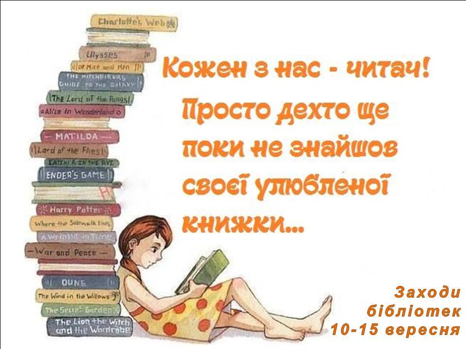 АНОНС заходів в бібліотеках міста з 10 по 15 вересня 2019 року