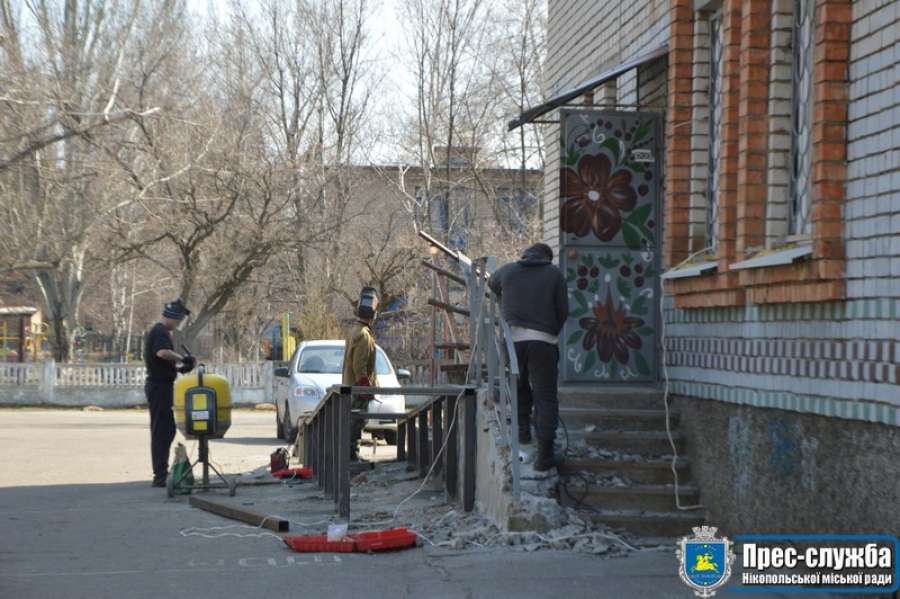 Активні роботи проводяться відносно повної реконструкції входу до центру. Буде замінено вхідні двері, а наразі реконструюють сходи. Що важливо – передбачено будівництво пандусу, який вкрай важливий для відвідувачів Нікопольського ресурсного центру.