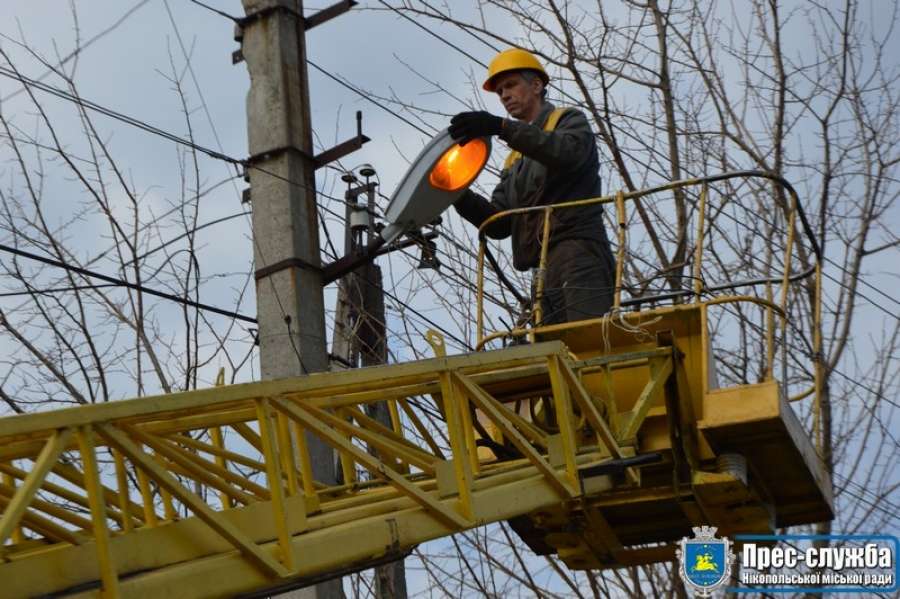 Комунальники Нікополя проводять планові роботи по заміні ламп вуличного освітлення та продовжують прибирати мулові відкладення на вулицях міста