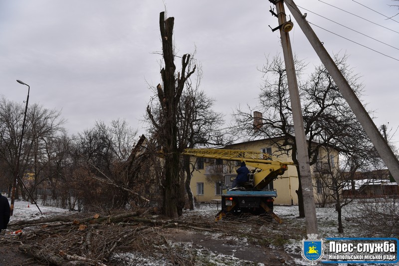 У ніч з 5 на 6 лютого, внаслідок сильного вітру, в Нікополі впало 6 дерев. Майже всі наслідки вже ліквідовано. На вул.І.Мазепи дерево порвало дроти освітлення, яке наразі відновлюють спеціалісти.