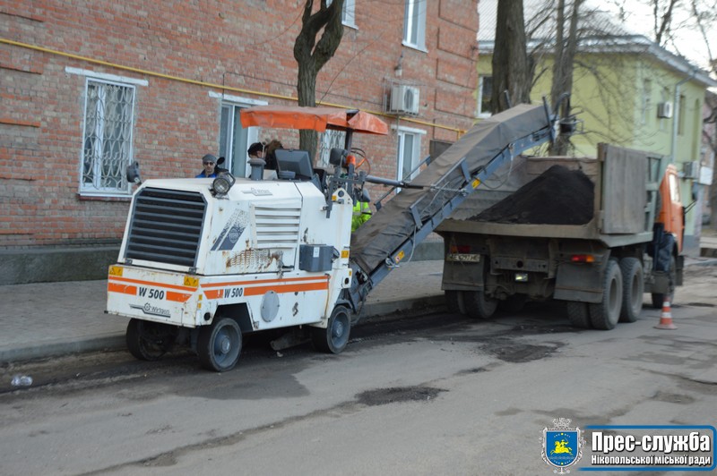 Тут тривають підготовчі роботи: демонтаж бордюрного каменю та фрезерування старого асфальту.