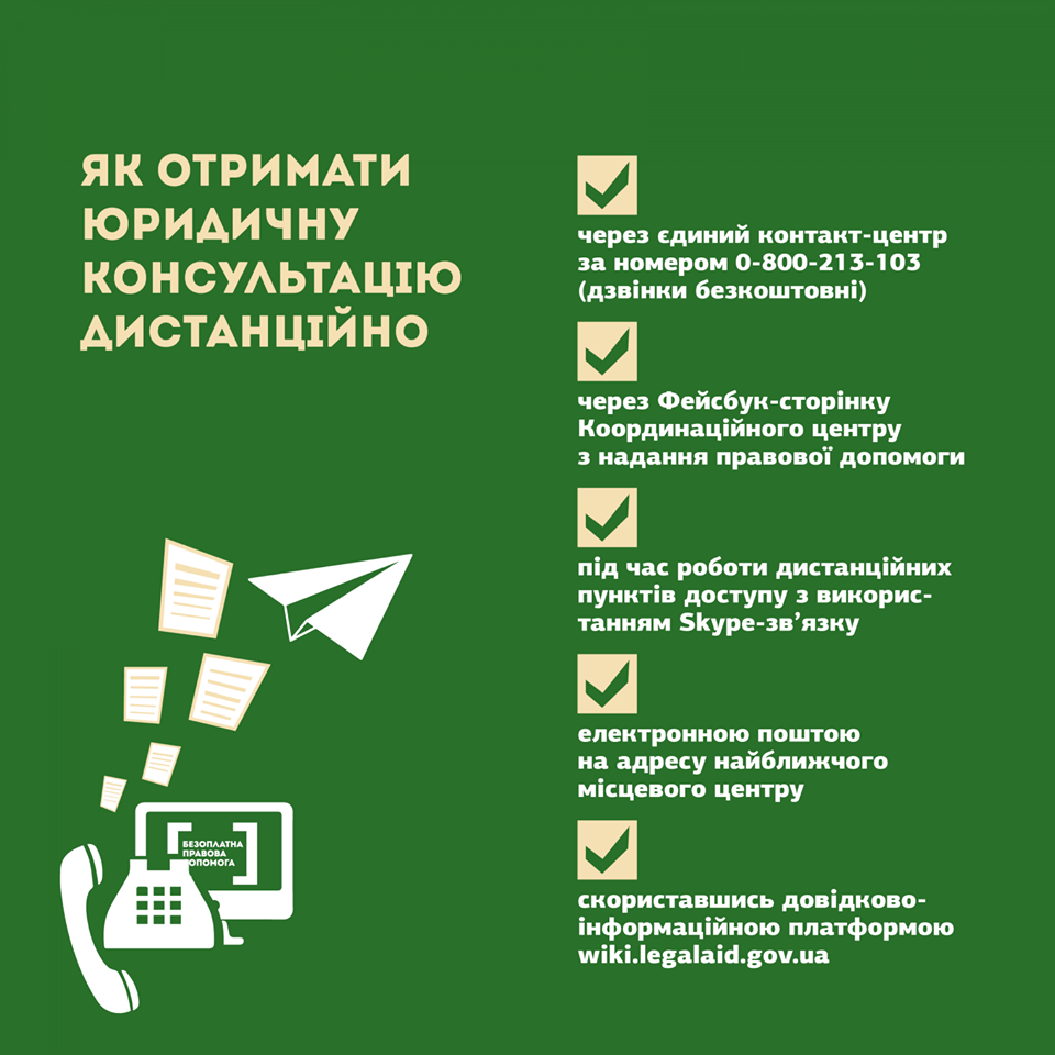 ✅ прийти в дистанційний пункт доступу і проконсультуватися через Skype-звязок з нашим юристом