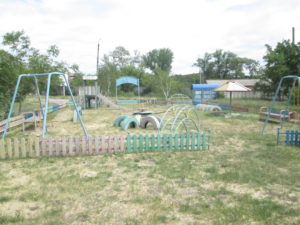 Здесь находятся качели, горка, карусель, песочница и многое другое. Вся территория обнесена небольшим забором. Вход со стороны проезжей части закрыт.