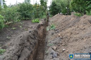 На вулиці Ушакова (приватний сектор) ведуться підготовчі роботи до укладання нового трубопроводу. Для того, щоб швидше виконати роботу, тут риють траншею двома екскаваторами.