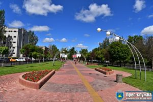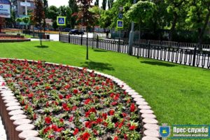 АЛЕЯ БІЛЯ ЦУМУ У НІКОПОЛІ ЗАМАЙОРІЛА КВІТАМИ НА КЛУМБАХ