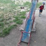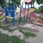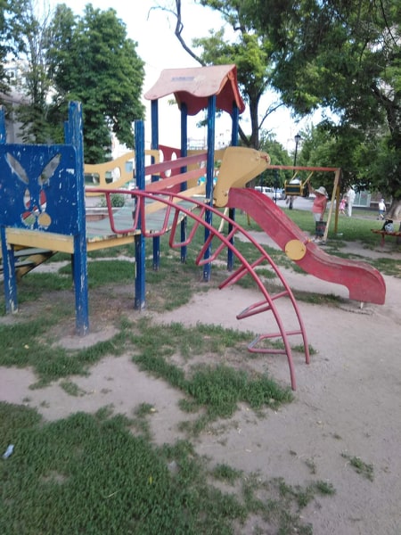 Дети продолжают играть на этих «поломанной и облупленной» детской площадке.
