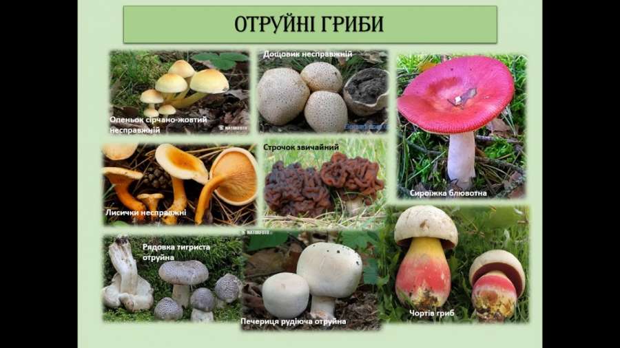 Симптоми грибного отруєння різні, найбільш отруйними є токсини блідої поганки, мухоморів білого і смердючого і деяких інших грибів.