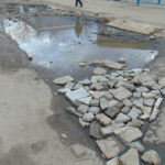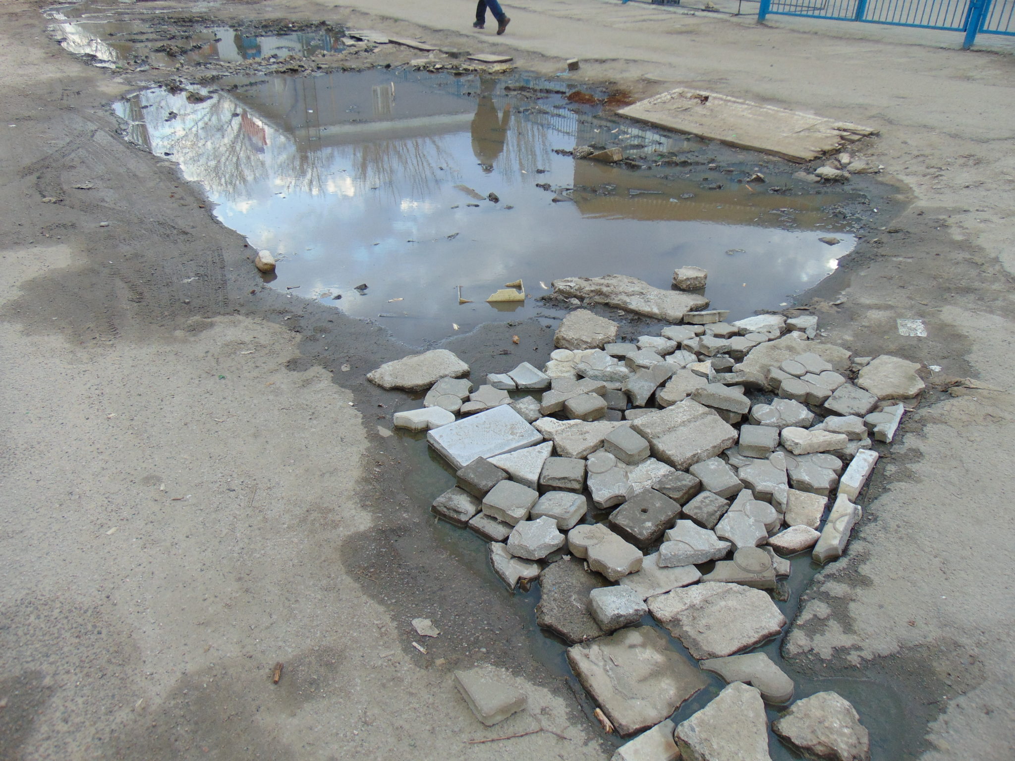 После дождей, а они у нас идут практически каждый день, здесь уже образуются не только лужи. Но уже и даже «болота». Некоторые «причастные» к работе рынку, пытаются «устранить» эту проблему и сами засыпают «подручными средствами» (кирпичами, камнями, фрагментами тротуарной плитки и прочим…).