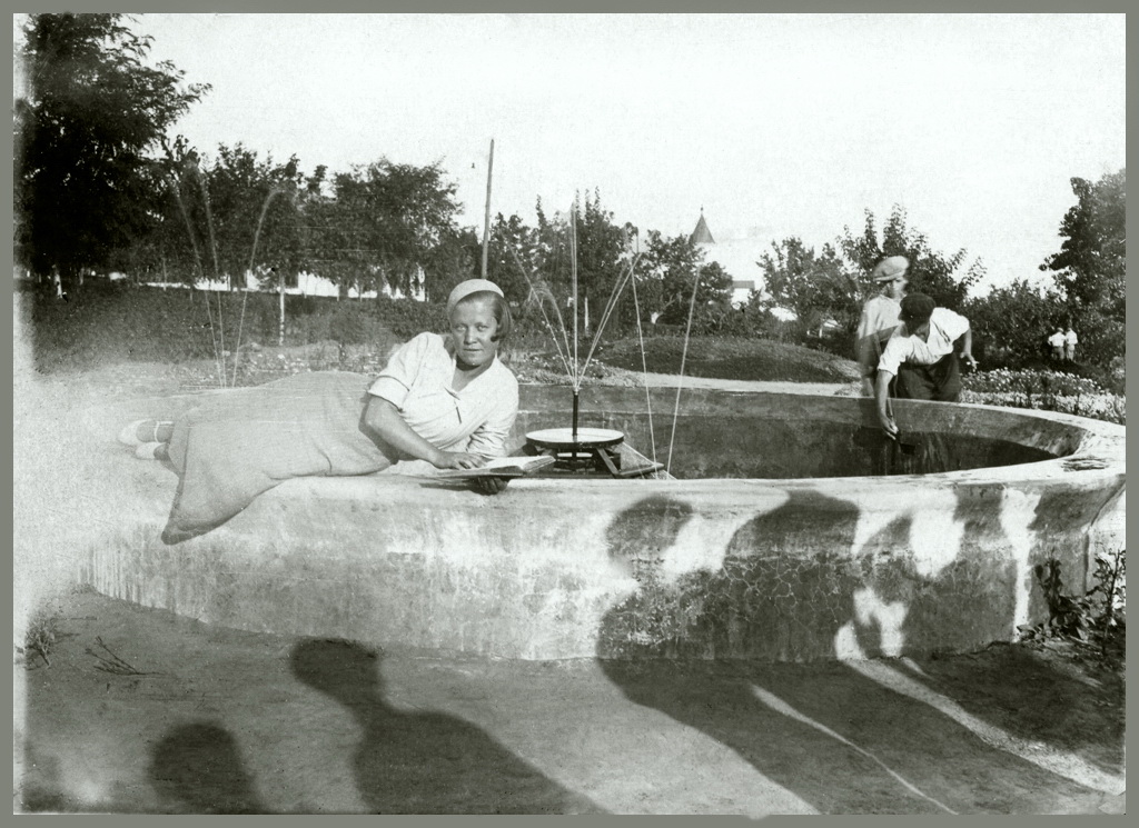 Довольно большую зеленую зону вокруг Дома отдыха украшали фонтаны и многочисленные гипсовые статуи. В те времена модно было украшать парки и скверы гипсовыми скульптурами, это была эпоха так называемого «гипсового соцреализма». Скульптурки стояли везде – вдоль дорожек, в глубине парка. Многие помнят «девушку с веслом», медведицу с медвежатами. Последняя композиция была похожа на тех медведей, которые располагались в Старой части города в детском скверике. Архитектор Владимир Коломойцев в этом плане явно перестарался, хотя в СССР городские скульптуры были, в основном, однотипные, и подобное можно было встретить практически в любом городе.
