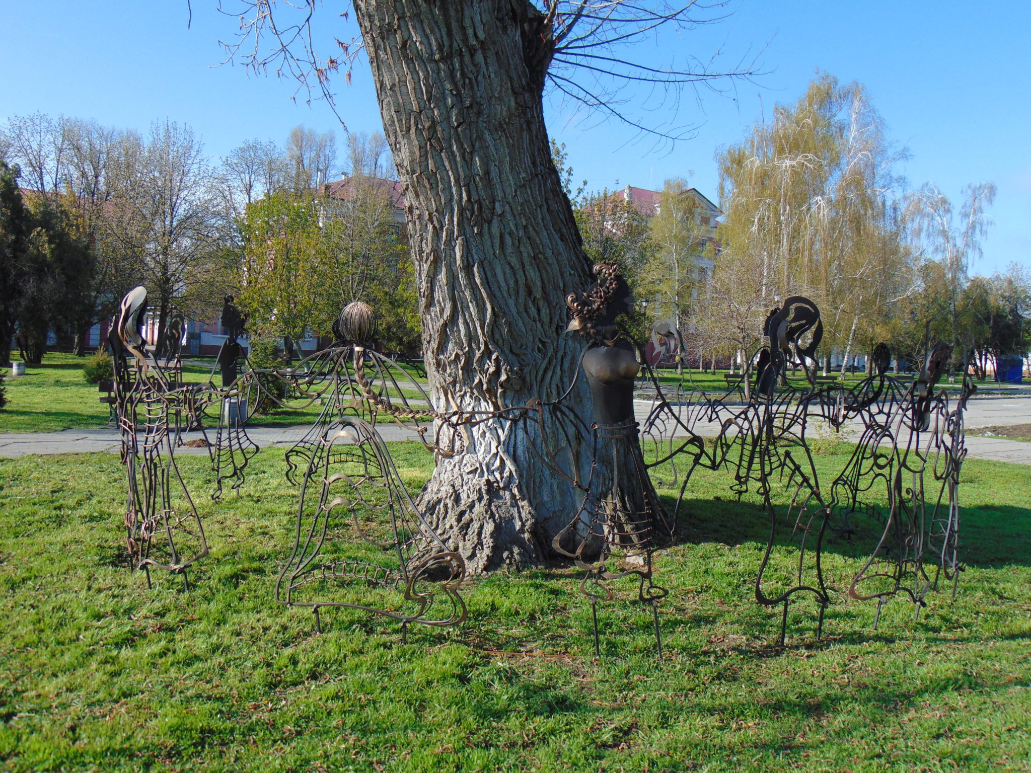 В старой части города, в сквере Освобождения (многие его называют просто сквер возле медучилища), недавно появился новый арт – объект «Хоровод». Который представляет собой композицию женских силуэтов, танцующих в хороводе вокруг старого дерева (некоторые утверждают, что это самое старое дерево Никополя).