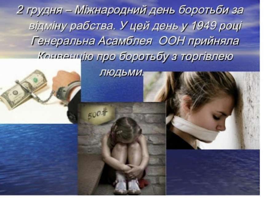 Як повідомляє Укрінформ, саме цього дня 1949 року на 4-ій сесії Генеральної Асамблеї ООН прийнято Конвенцію про боротьбу з торгівлею людьми і з експлуатацією проституції третіми особами. Для України документ набрав чинності 15 лютого 1955 року.