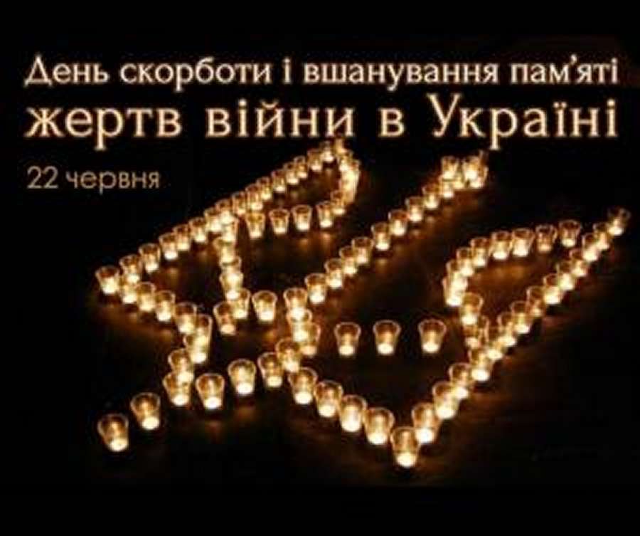 Щороку 22 червня наш народ вшановує світлу пам’ять мільйонів земляків, життя яких обірвала Друга світова війна. Горем і болем вона пройшла через кожну українську сім’ю, завдала страшних та непоправних втрат. Під час бойових дій, через окупаційний терор, голод в тилу та примусовий вивіз загинули близько 10 мільйонів осіб, дощенту були зруйновані понад 700 міст та містечок, 28 тисяч сіл.
