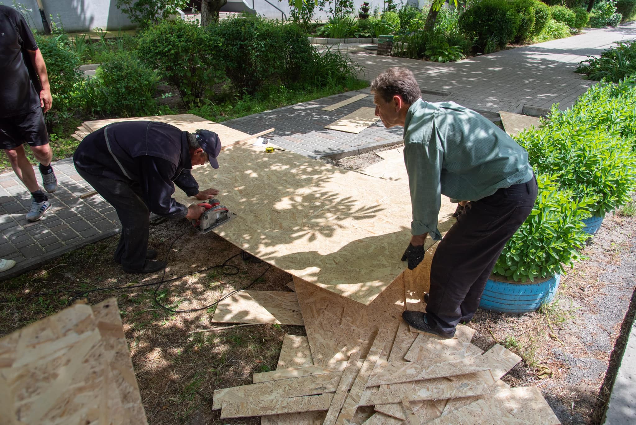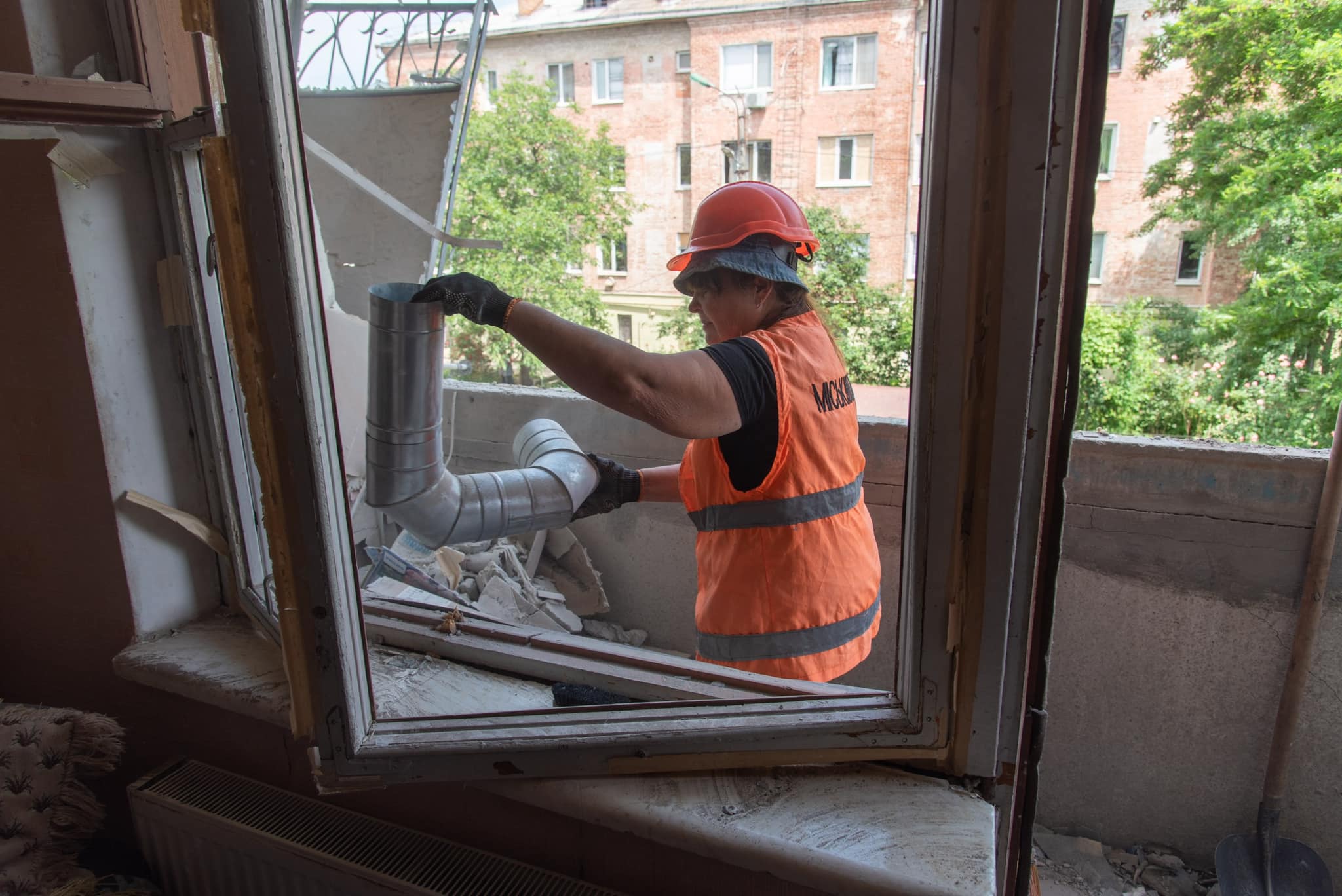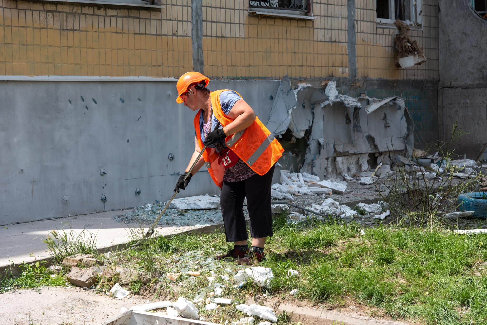 На місці обстрілу працюють бригади працівників комунальних служб. Мешканцям, чиє житло постраждало безкоштовно надають будівельні матеріали, щоб тимчасово закрити розбиті вікна. Також комунальники працюють над прибиранням уламків, будівельного сміття, битого скла.