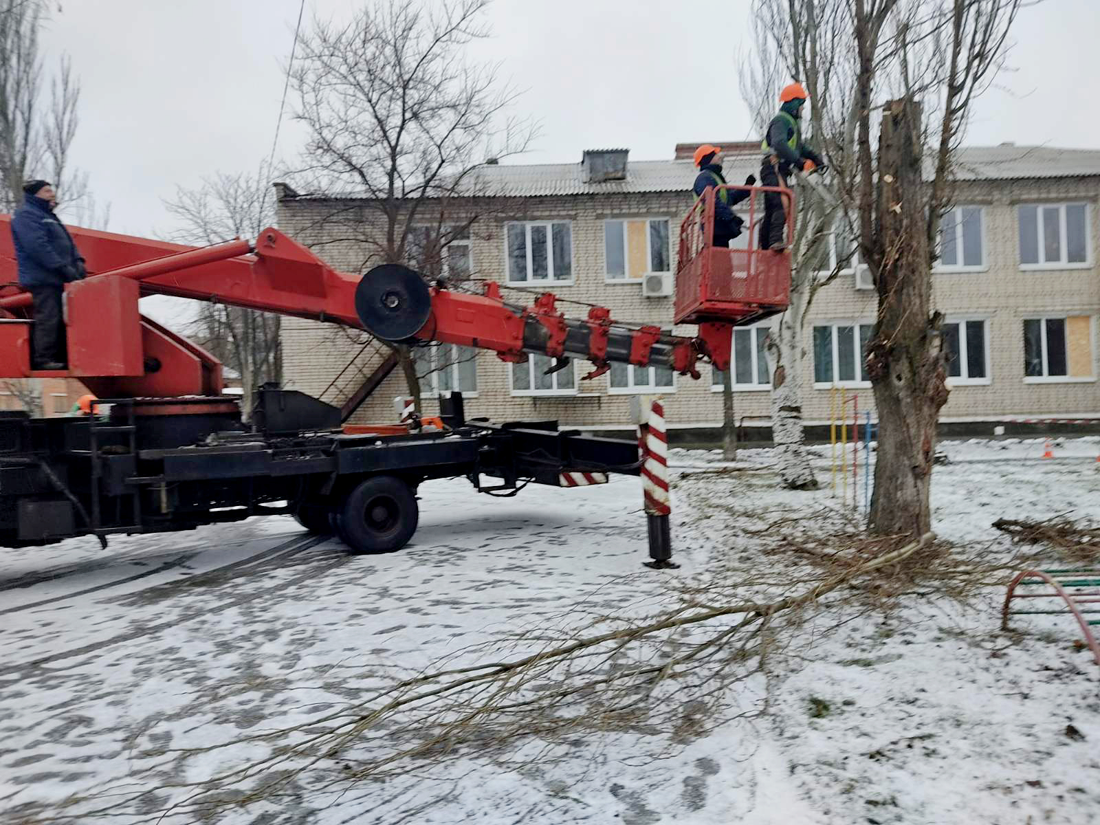 Комунальники зносили аварійні дерева. Ці види робіт проводяться тільки на підставі складених актів за зверненнями нікопольців. Також проводили формуючу обрізку дерев згідно правил поводження з зеленими засадженнями.