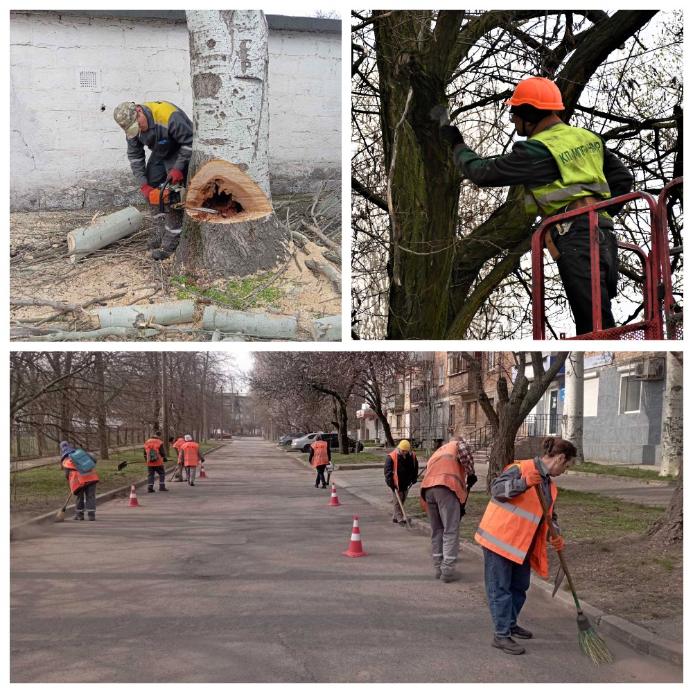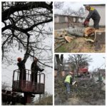 Ще одне завдання, яке стоїть перед комунальниками – це санітарна обрізка дерев. Вони не лише обрізають гілки, які можуть пошкодити дроти вуличного освітлення, а й зафарбовують місця обрізки, щоб запобігти ураженню дерев шкідниками. Окремі бригади працюють на зносі аварійних дерев уздовж проїжджої частини.