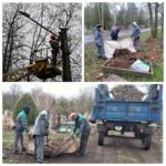 Електрики відновлюють лінії зовнішнього освітлення, а на міському кладовищі прибирають купи сухостою, штучних квітів та вінків. Все це сміття вивозять за допомогою спецтехніки.