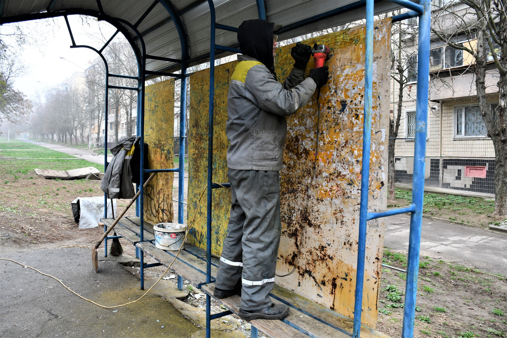 Триває ремонт автобусних зупинок. Зараз комунальники займаються очищенням зупинок від наліпок та оголошень. Незабаром розпочнеться фарбування зупинок, що значно покращить їх вигляд.