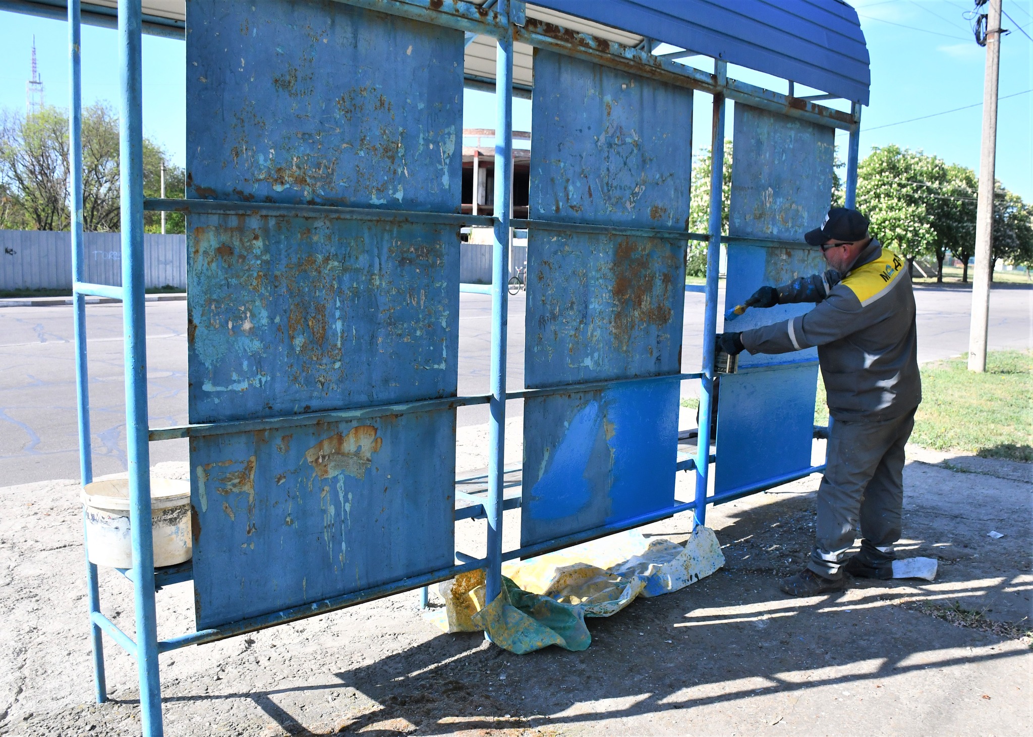 Проводяться технічні роботи на об’єктах міської інфраструктури. Електрики обслуговують світлофори для забезпечення безпеки дорожнього руху. На вулиці Незалежності України триває фарбування автобусних зупинок з метою покращення їхнього вигляду.