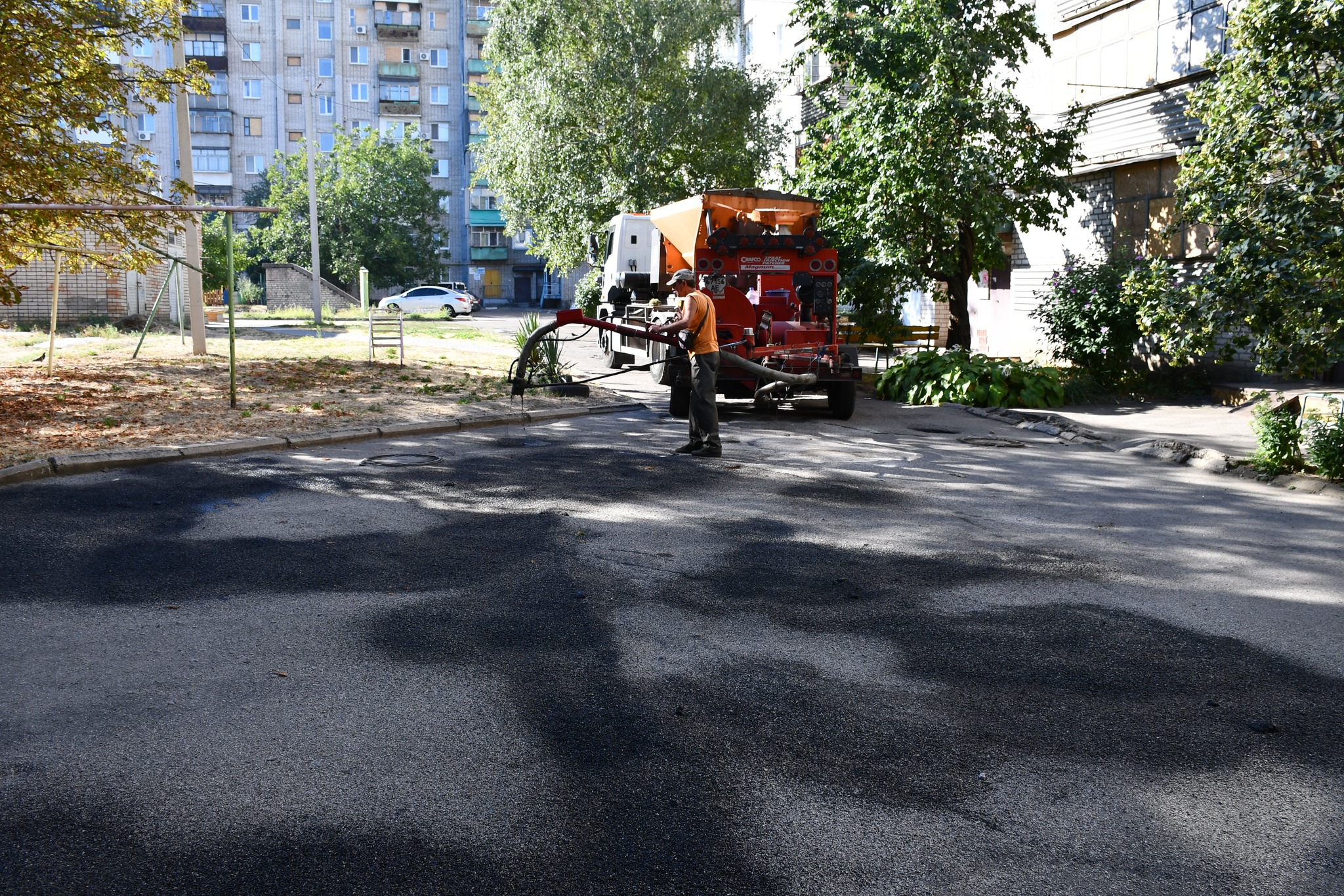Продовжується ліквідація ям і вибоїн у дворах багатоквартирних будинків. Усунення небезпечних дефектів дозволяє полегшити пересування машинам та пішоходам.