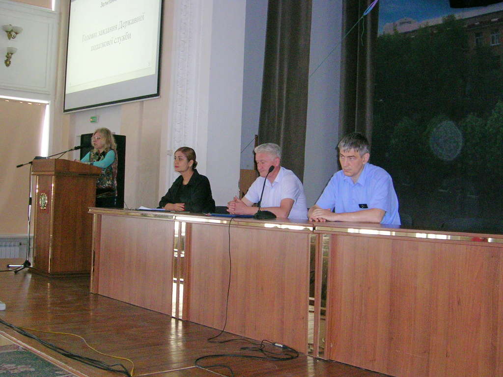 У заході з доповідями прийняли участь керівництво управлінь ГУ ДФС: начальник управління по роботі з персоналом Геннадій Гребінчук, начальник управління комунікацій Манушак Осипова та заступник начальника управління податків і зборів з юридичних осіб Віталій Мироненко.