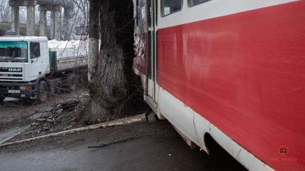 «Съехав с путей, трамвай притерся с деревом. На место вызвали аварийную бригаду, которая оперативно устранила последствия аварии. Пассажиров электротранспорта высадили, многие добирались до правого берега пешком», – отмечается в сообщении.