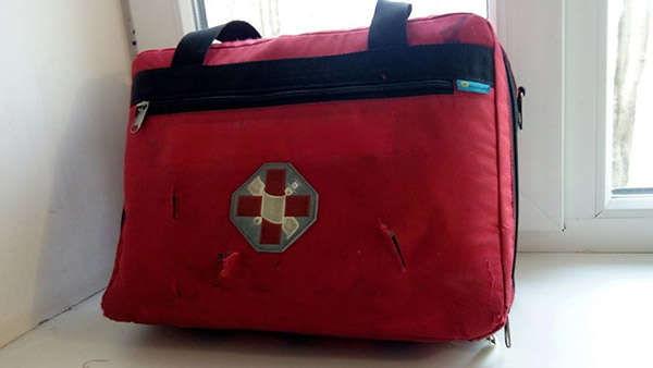 Еще одно подтверждение незащищенности работников скорой помощи, которые приезжают на вызов. Вашему вниманию фото медицинской сумки, которой закрывалась бригада от свирепого пса на вызове в с. Новониколаевка Верхнеднепровского района. Пьяная хозяйка вызвала скорую помощь, чтобы ей полечили радикулит. Об этом в соцсети сообщил директор Днепропетровского областного центра экстренной медицинской помощи и медицины катастроф Радий Шевченко.