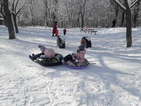 Настоящая зимняя погода заставила днепровских ребятишек оторваться от гаджетов и выбежать на улицу, чтобы прокатиться с ледяных горок.