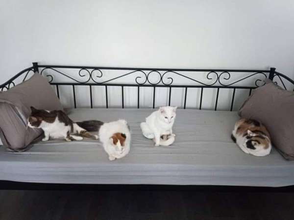 Ее нашли семимесячным котенком в подворотне Каменского, грязную, ползающую только на передних лапках, очень худую и ослабленную. Так животное, по словам очевидцев, скиталось по холоду несколько недель.