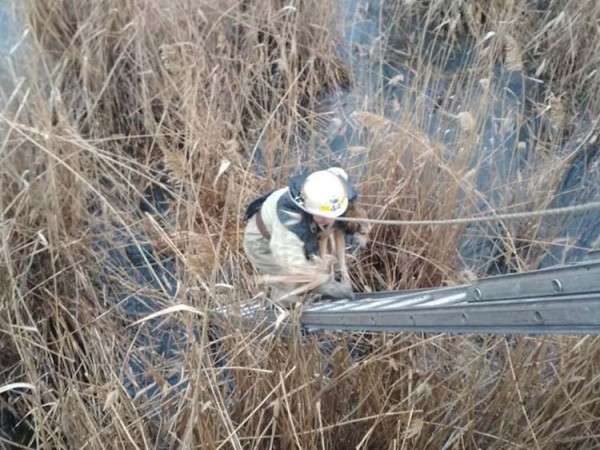 На Днепропетровщине спасатели достали собаку из ледяного капкана