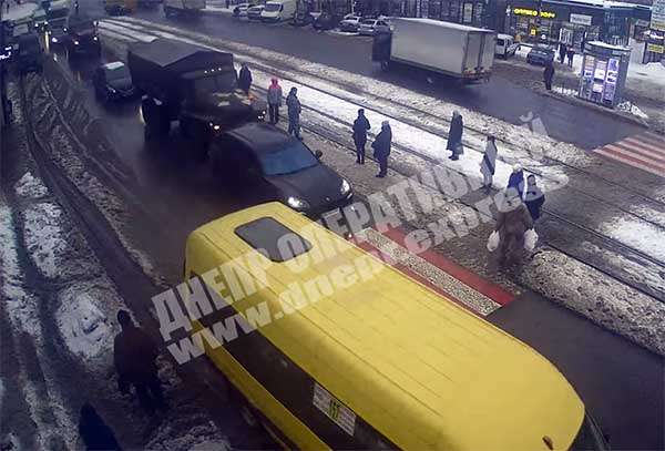 В Днепре военный грузовик снёс Porsche Cayenne: появилось видео момента аварии