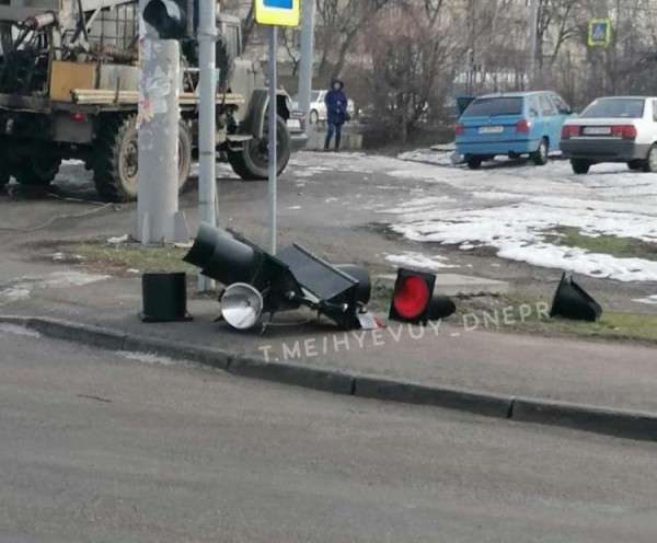 Водители, проезжающие через перекресток ул. Калиновой и Янтарной были немало удивлены – разбитый светофор лежал на тротуаре. Об этом сообщает телеграм канал Hyevuy_dnepr.