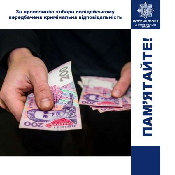 «Під час спілкування з кермувальником інспектори помітили в нього ознаки алкогольного сп’яніння, тож запропонували освідування. Чоловік у відповідь запропонував гроші аби його відпустили додому. Громадянина неодноразово попереджували про кримінальну відповідальність за таку пропозицію, але той слова патрульних ігнорував. На місце події для фіксування даного факту поліцейські викликали слідчо-оперативну групу Самарського відділку поліції», – отмечается в сообщении.