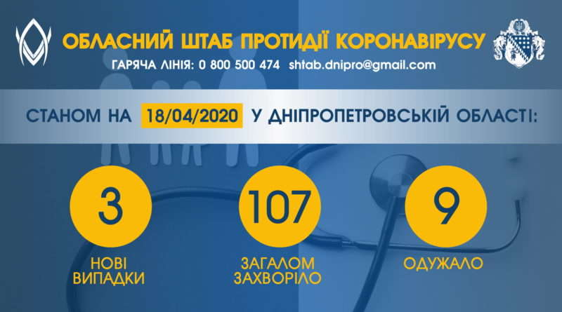 Нині в Україні – понад 5,1 тис лабораторно підтверджених випадків COVID-19. Із них 107 – на Дніпропетровщині. Дев’ять мешканців області вже одужали.