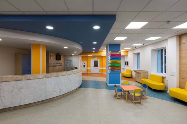 Сучасний дизайн приймального відділення, коридорів та палат, де відразу й не збагнеш, куди саме потрапив – до п’ятизіркового готелю чи лікарні. Веселі малюнки на стінах, побутові умови, наче в кращих лікарнях Європи. Кожна палата – для маленького пацієнта та його мами.