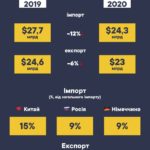 В Украине в первом полугодии 2020 года импортировали товаров на более 24,3 млрд долларов, тем временем, как экспорт составил 23 миллиарда долларов.