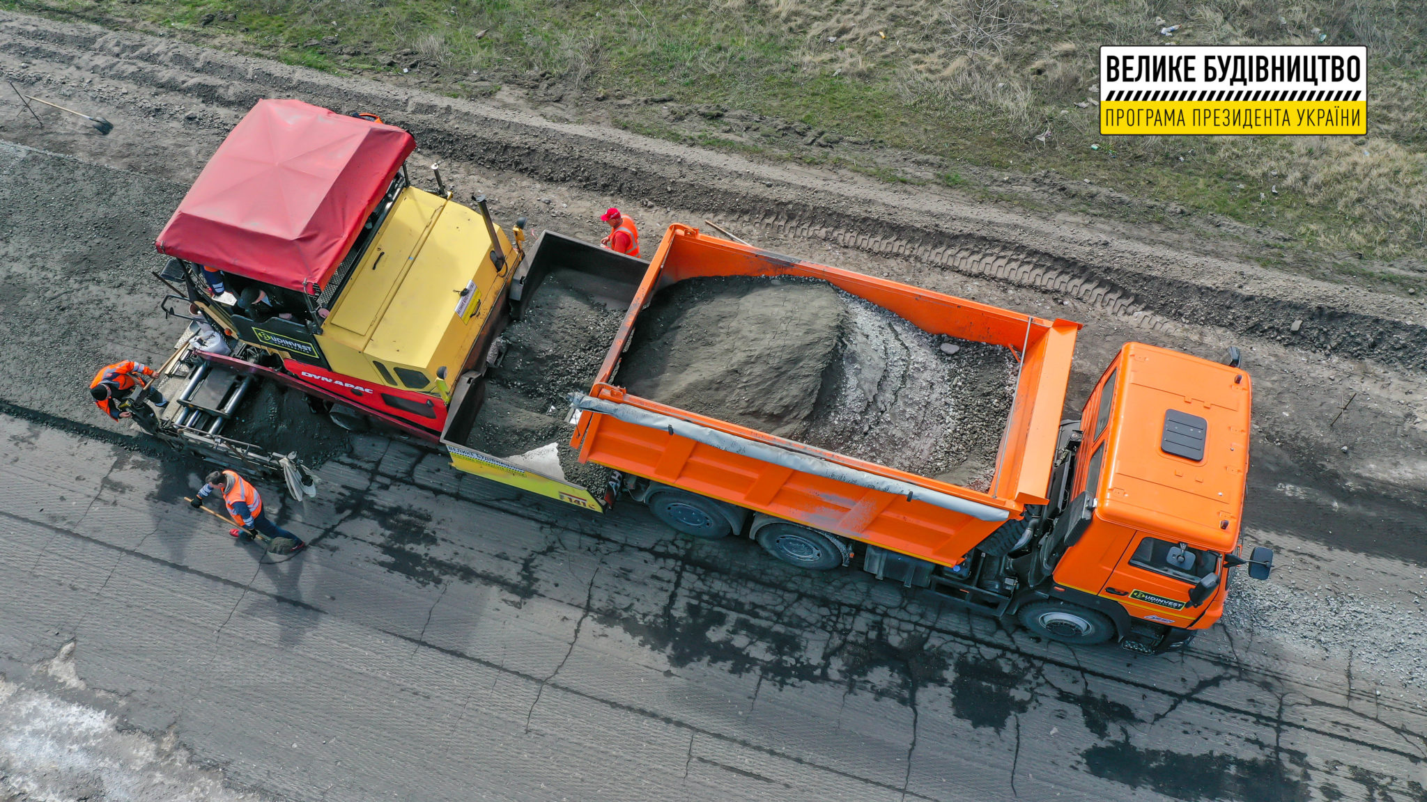 Дорожники працюють поблизу Кам’янського. Почали від межі з містом та просуваються в напрямку Шульгівки. Вже зняли понад 4 км старого покриття. Нині там укладають вирівнюючий шар асфальту. Зверху буде ще один.