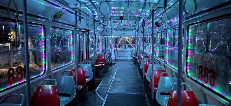 На Дніпропетровщині, у Кам’янському почали прикрашати трамвайні вагони новорічною ілюмінацією. Першим вагоном, який прикрасили співробітники депо, стала «Татра Т-3» з бортовим номером 688. Найближчим часом вагонів, оздоблених різнокольоровими електрогірляндами, побільшає. Про це повідомив у «Фейсбуку» директор комунального підприємства «Транспорт» Іван Горбаренко.