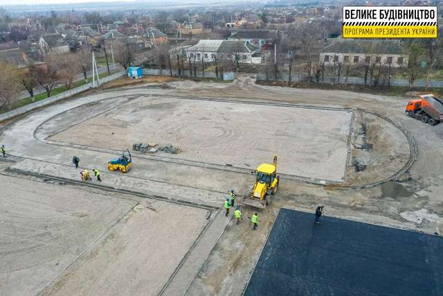 На стадионе в Марганце подрядчики работают по программе Президента Украины Владимира Зеленского «Велике будівництво».