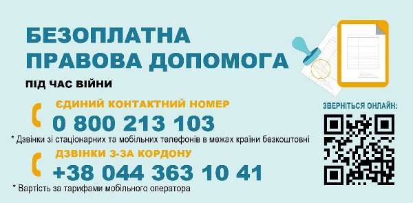 В Україні діє Єдиний контактний номер 0 800 213 103. Туди можна звертатися за консультаціями юристів. Дзвінки зі стаціонарних та мобільних телефонів в межах країни безкоштовні. Номер для дзвінки з-за кордону +38 044 363 10 41. Вартість за тарифами мобільного оператора.