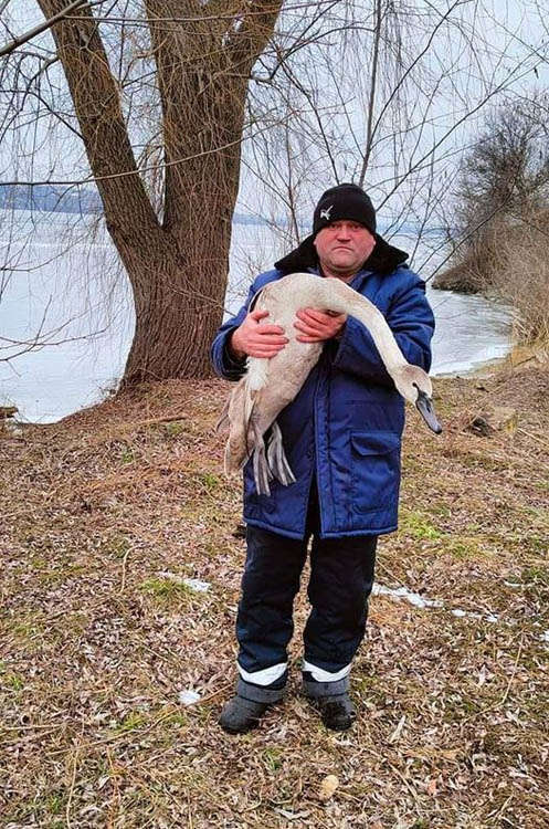 У Дніпрі небайдужі містяни звернули увагу на білого лебедя. Він плавав біля пляжу ж/м Придніпровська і не міг злітати.