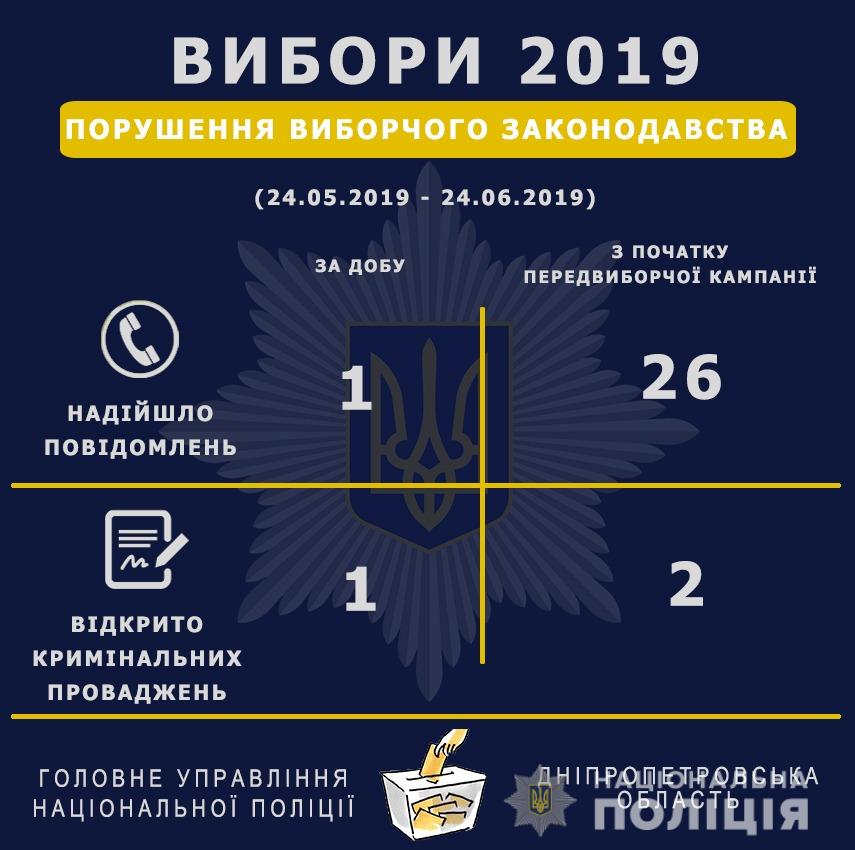 За даними фактами в ГУНП в Дніпропетровській області відкрито два кримінальних провадження за ст. 160 (Підкуп виборця, учасника референдуму) та ст. 157 (Перешкоджання здійсненню виборчого права або права брати участь у референдумі, роботі виборчої комісії або комісії з референдуму чи діяльності офіційного спостерігача) Кримінального кодексу України.