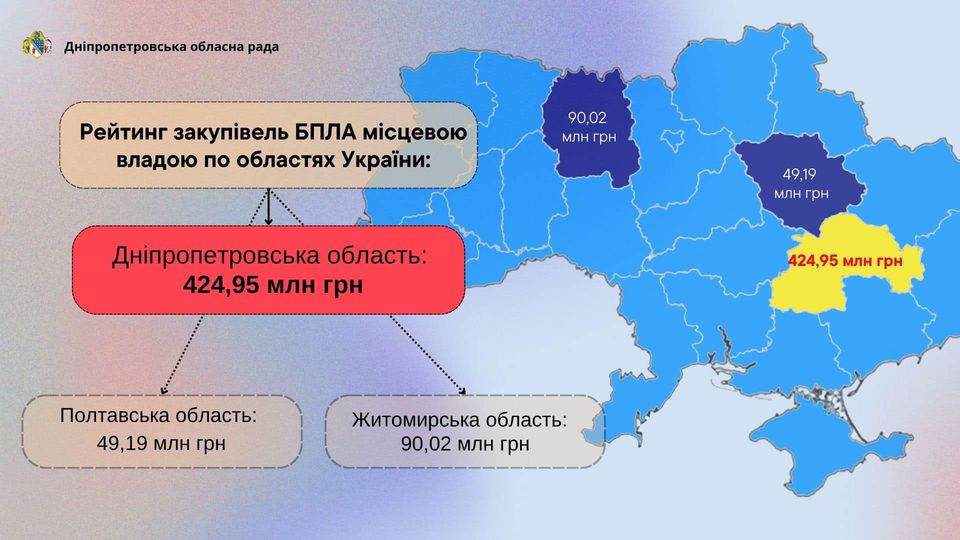 Дніпропетровська область – перша у рейтингу закупівель БПЛА місцевою владою для військових.