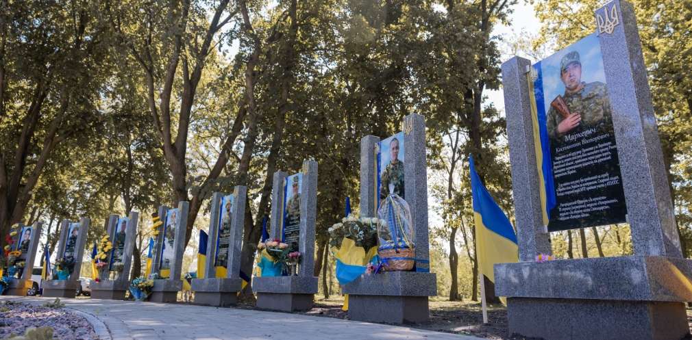 На алеї десятки стел. На кожній фото людей, які віддали життя, захищаючи Батьківщину.