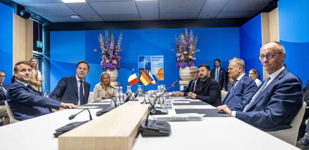 У межах саміту НАТО в Гаазі Президент України Володимир Зеленський провів зустріч із лідерами держав формату E5 (Німеччина, Франція, Велика Британія, Італія, Польща) та Генеральним секретарем НАТО Марком Рютте.