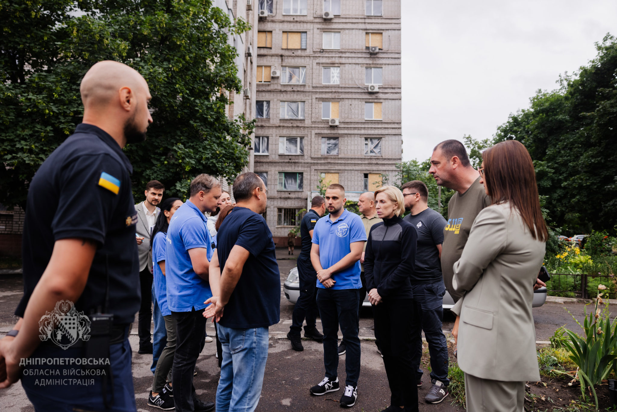 Приїхала вона також до понівечених після атаки будинків у Дніпрі. Поспілкувалася з надзвичайниками, які ліквідовували наслідки ворожого злочину. Від благодійників дізналася про допомогу, вже надану людям. З керівником району міста Ірина Верещук говорила про відновлення житла.