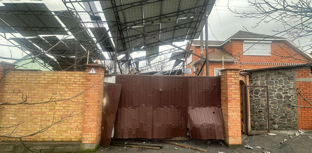 Побиті адмінбудівля, 2 гімназії, спортивна та мистецька школи, приватне підприємство, бюро ритуальних постуг, 8 осель, 6 господарських споруд, сонячні панелі, авто, лінія електропередач, газогін.