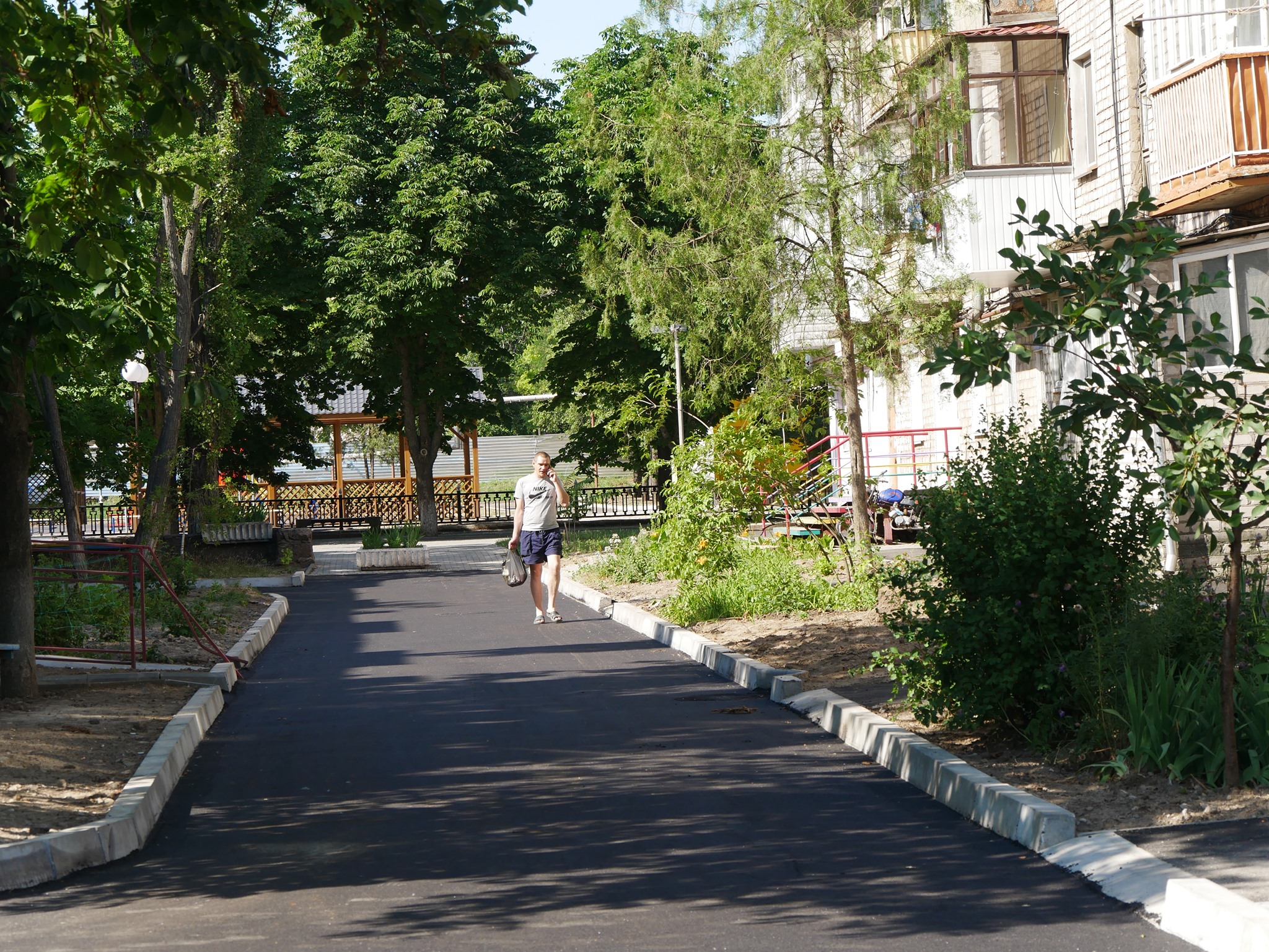 По-новому виглядає і двір будинку № 18, що по Курчатова, де теж проведено комплексні ремонтні роботи. Тепер триватиме благоустрій цих територій. Мешканці зазначають, такі масштабні роботи проводяться у їхніх дворах вперше. Світлини «до» та «після» ремонту показують очевидну різницю.
