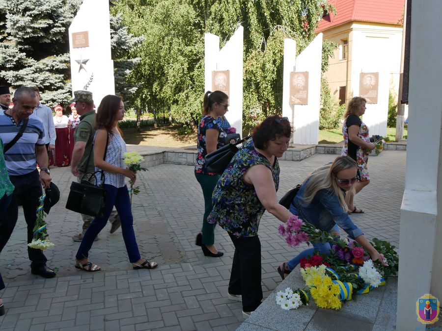 Хвилиною мовчання присутні вшанували загиблих героїв. Поминальну молитву відслужив благочинний, настоятель храму Петра Могили отець Іван. Живі квіти лягли до обелісків Алеї Слави та на могили наших земляків, Почесних громадян міста Олександра Ісаєнка, Дмитра Стрільця, Олександра Мокієнка та Олега Кравченка, який загинув саме в цей день три роки тому.
