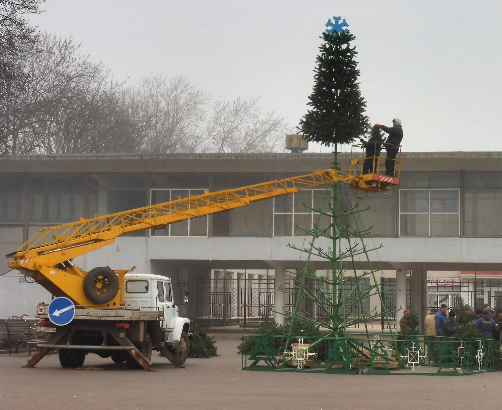 На центральній площі почали встановлювати головну міську ялинку