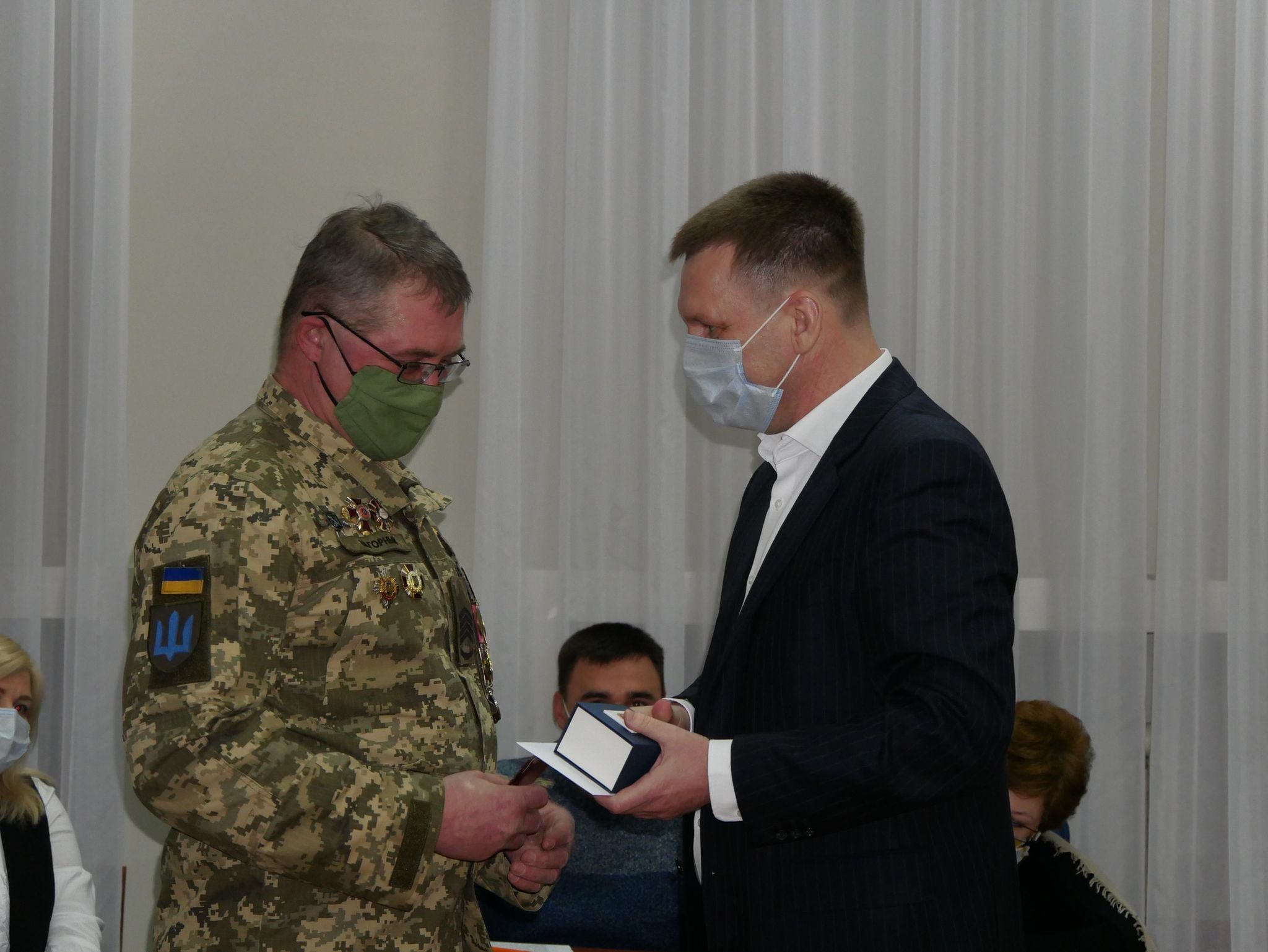 – Це, дійсно, дуже приємно. Приємно усвідомлювати, що в рідному місті цінують те, що ми робимо для країни, – зазначає Микола Миколайович, отримуючи відзнаку від міського голови Олександра Шаповала.
